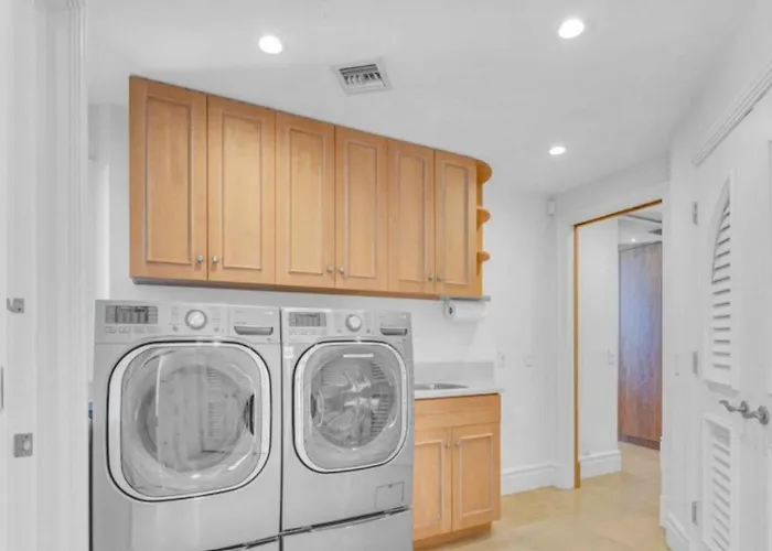 Esta propiedad también tiene una cocina completa y vistas al mar.